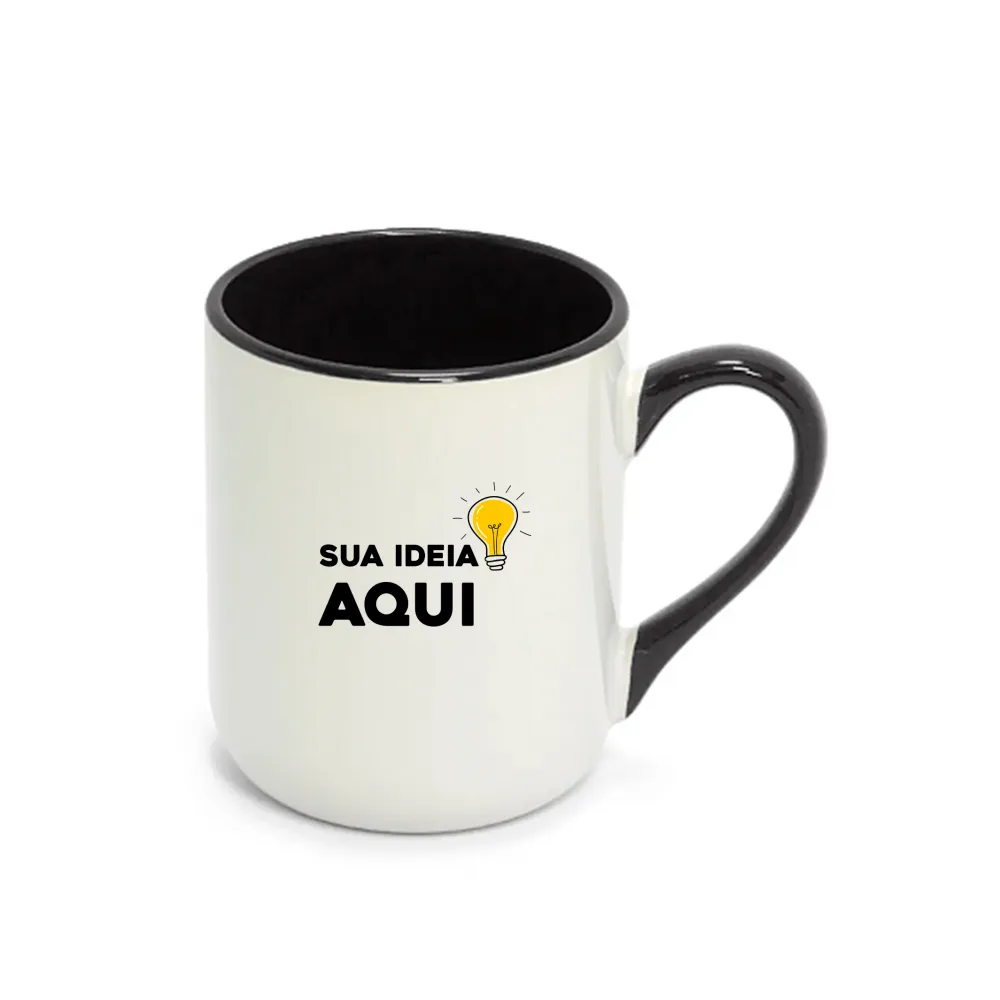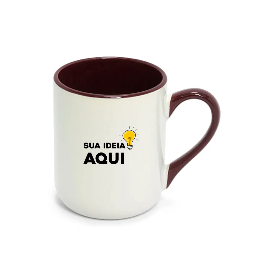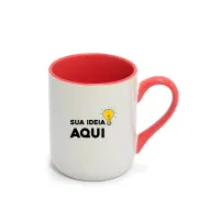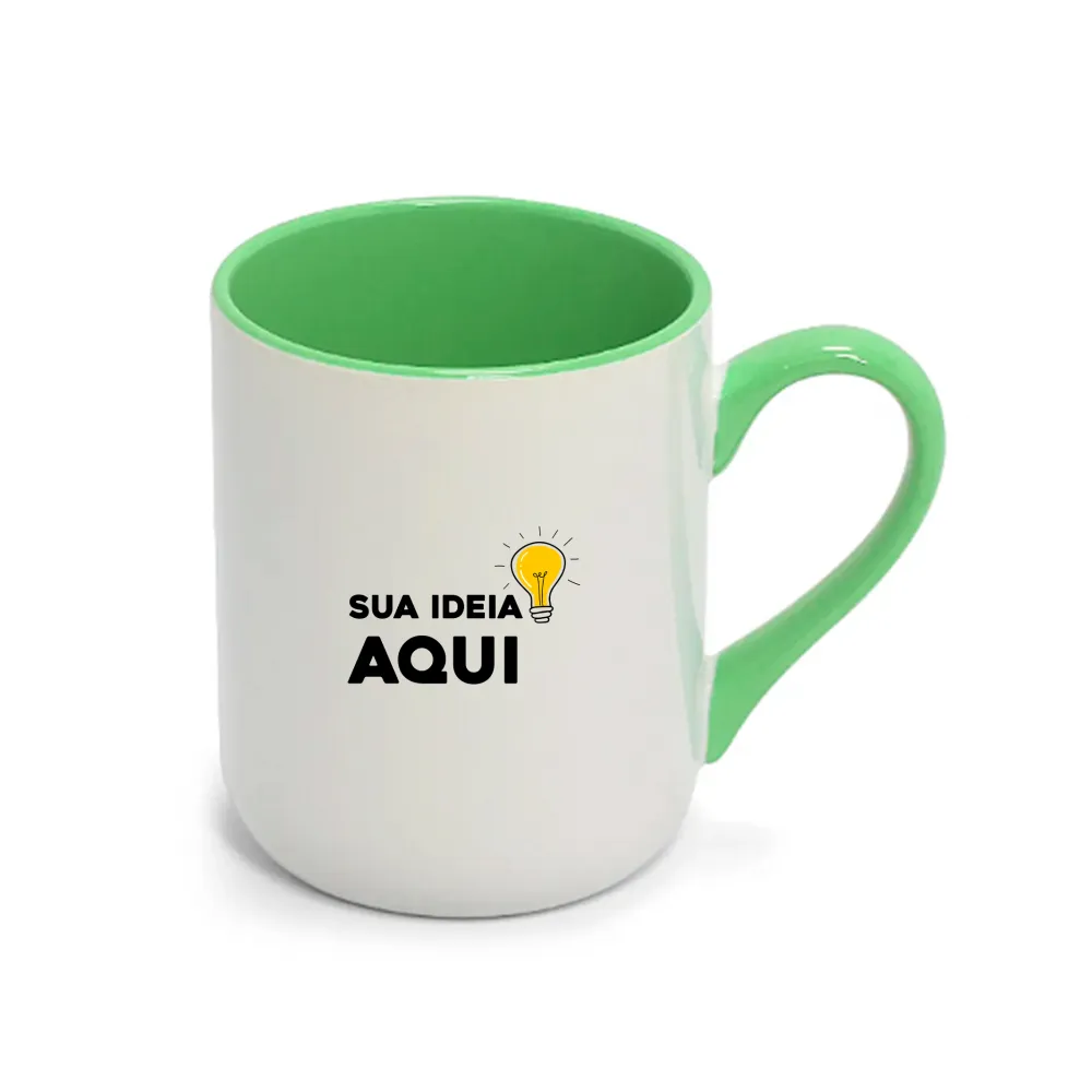 Caneca Imperial Cerâmica Branca com Alça e Interior Colorido - 325ml