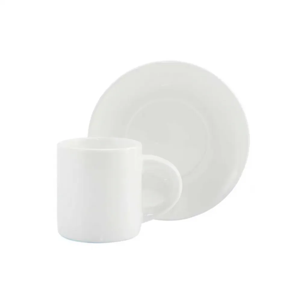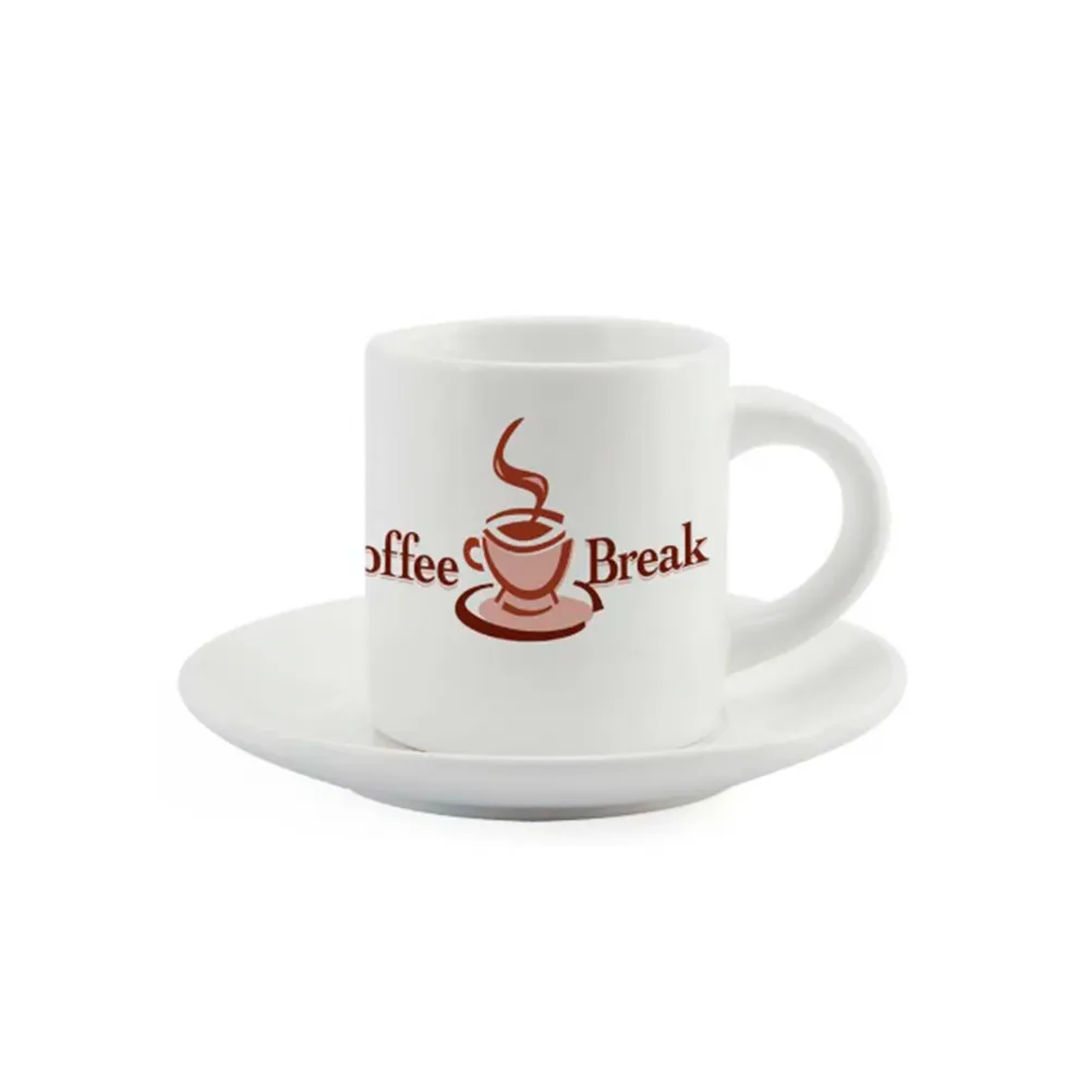 Xícara de cerâmica branca para sublimação acompanha pires, ideal para marcar sua identidade visual, perfeito para reuniões e eventos corporativos.